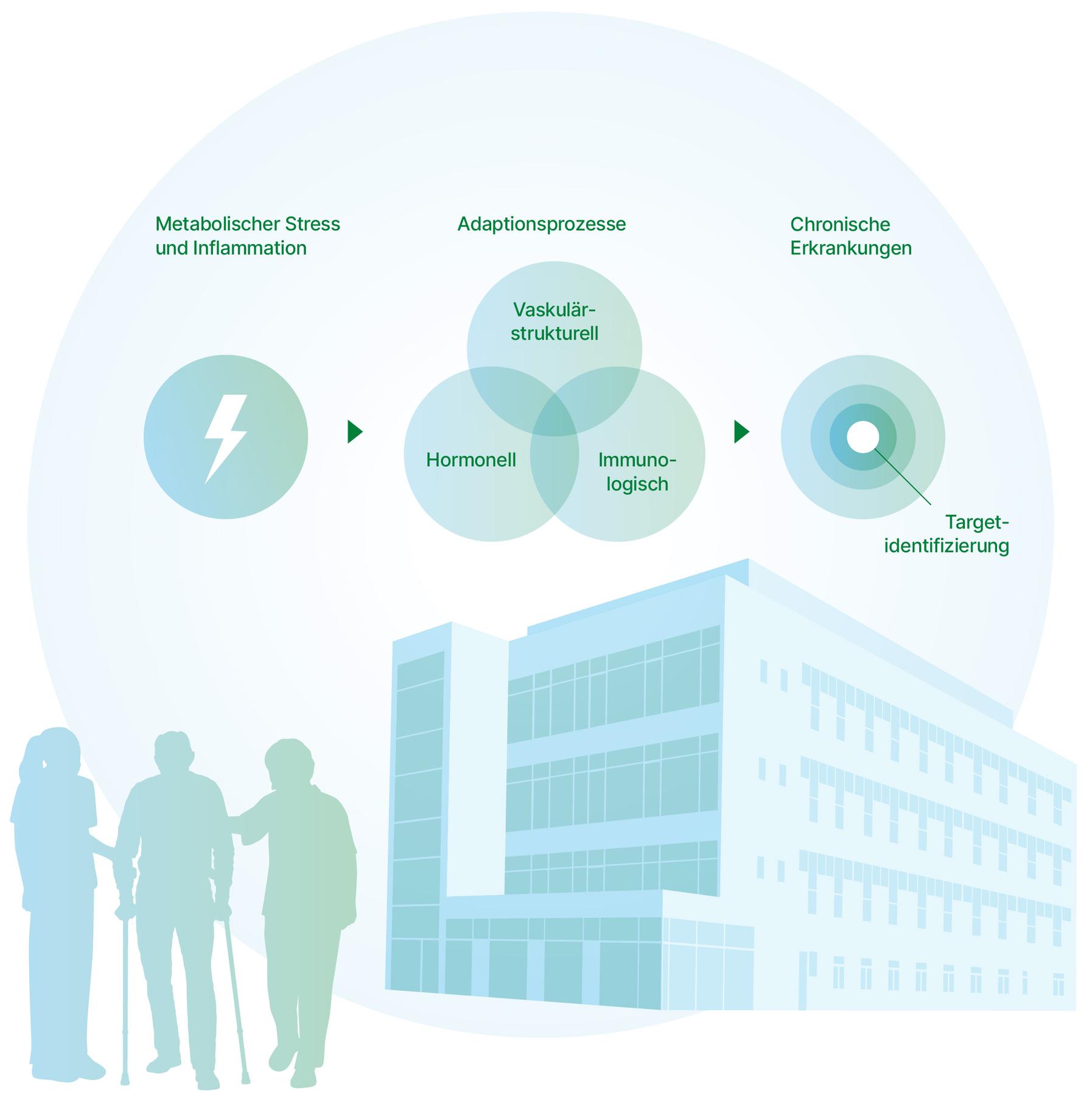 Die Entschlüsselung komplexer Krankheitsinteraktionen wird von der gemeinsam genutzten Forschungsinfrastruktur mit neuesten Analyseplattformen profitieren. Interdisziplinäre Teams werden in fachübergreifenden Projekten neue Erkenntnisse und Lösungen erarbeiten und die durch Spezialisierung bedingten Kommunikations- und Integrationshürden überwinden. Als zukunftsweisende Therapieansätze werden pharmakologische, Nukleinsäure-basierte und Zell-basierte Technologien erforscht.