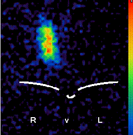 Scintigram after an almost surgically removed thyroid gland.