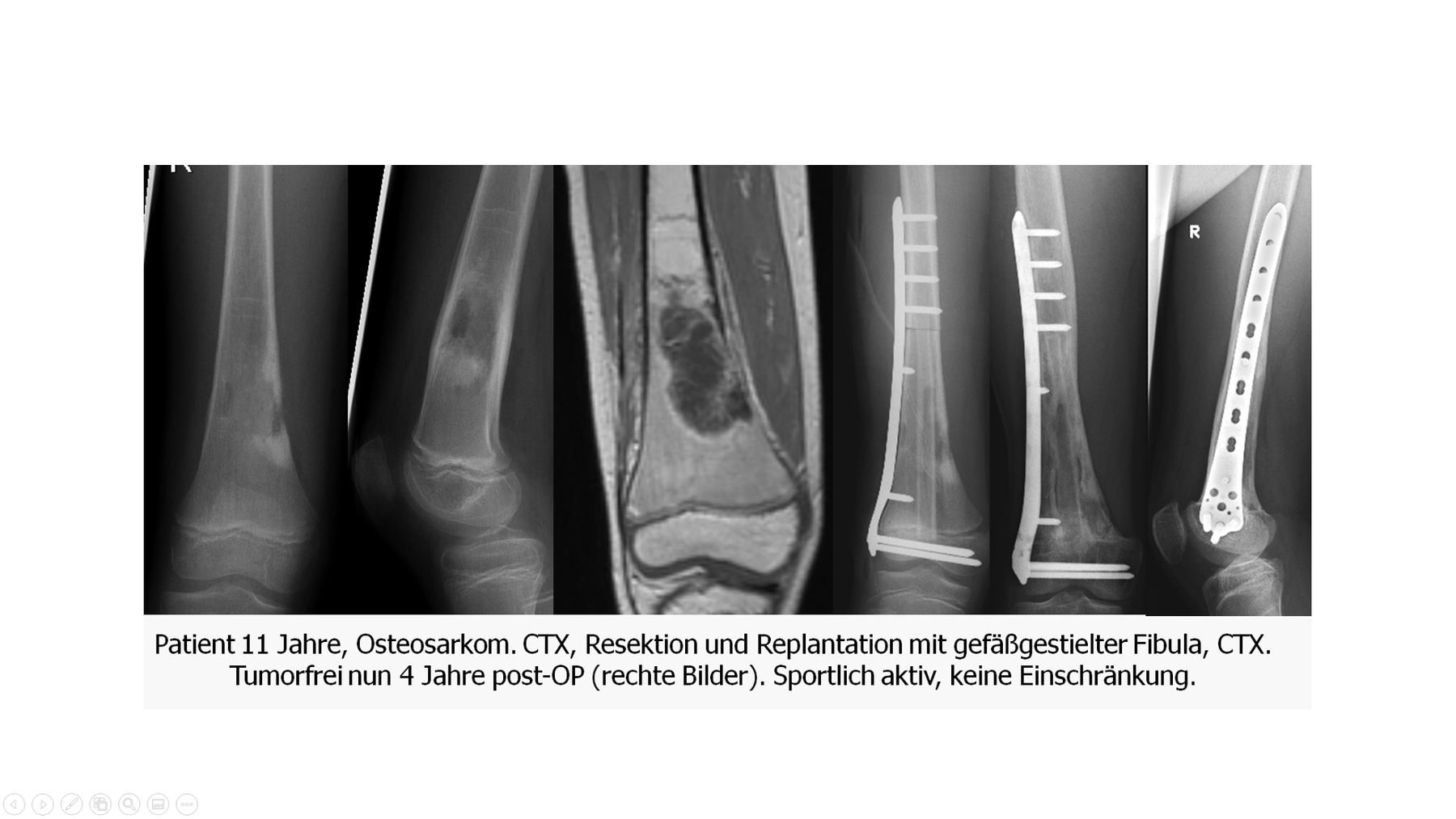 62-Jahre, Osteosarkum der Tibia. Biopsie, CTX, dann definitive Resektion