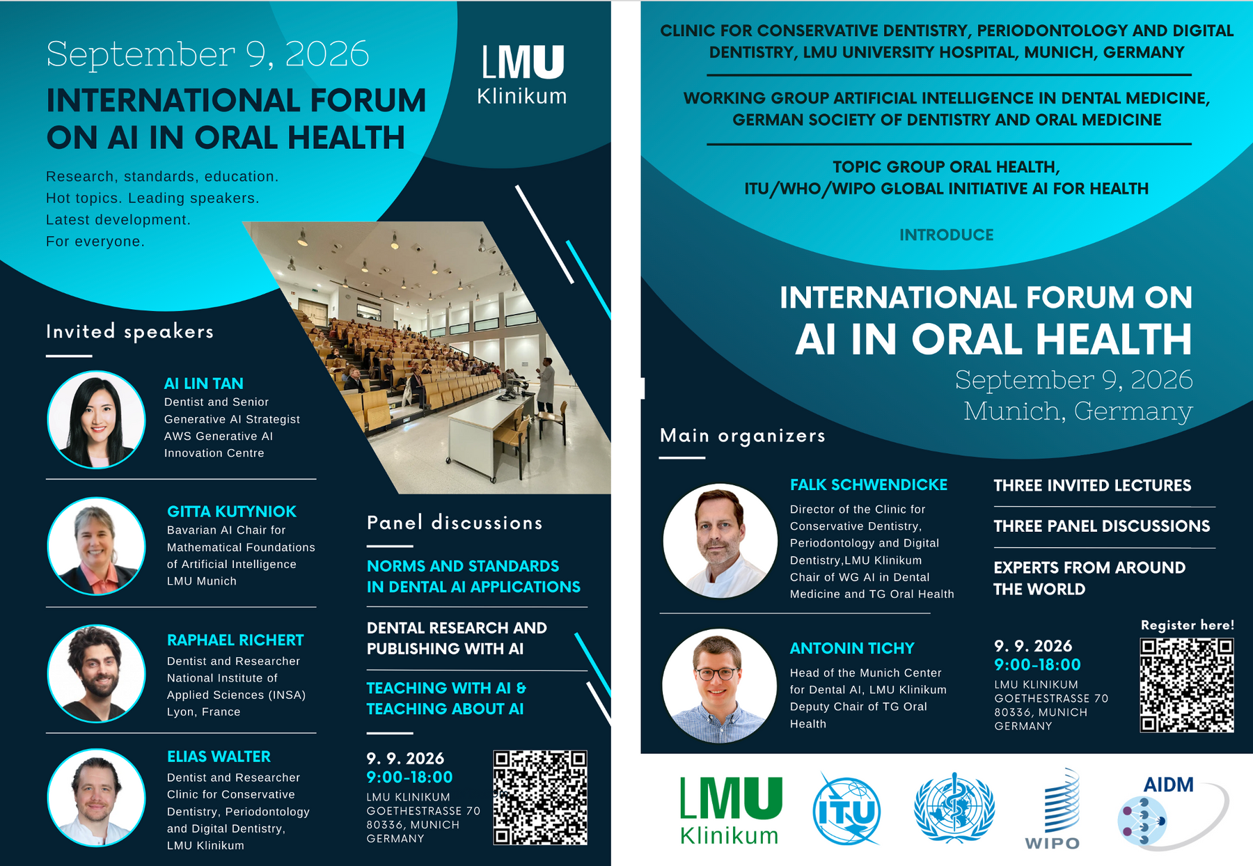Die Themengruppe Mundgesundheit der ITU/WHO/WIPO Global Initiative on AI for Health veranstaltet im September 2026 erneut ein Jahrestreffen. Der letzte Tag des Treffens wird für die Öffentlichkeit zugänglich sein und 3 eingeladene Vorträge sowie 3 Podiumsdiskussionen mit zahlreichen internationalen Expertinnen und Experten umfassen. Nutzen Sie diese besondere Gelegenheit zum Austausch und zur Zusammenarbeit in diesem sich rasant entwickelnden Bereich.